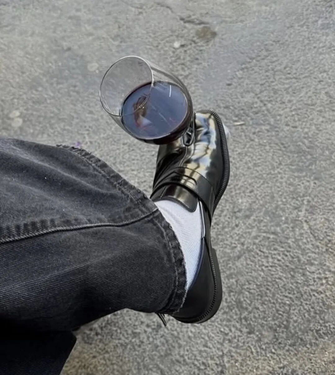 有朋友推着行李箱出差路上,不小心低头看到自己的脚,