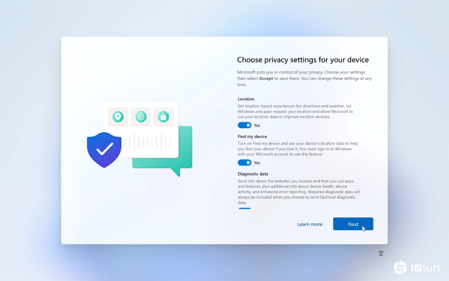 是的,我在标准的开箱即用体验(OOBE)中,按照微软的推荐开启了所有设置。说实话,这其实意味着更少的操作和更少的鼠标点击,因为它更多的是保持默认设置,少动小开关。然而,这种做法让人有点奇怪,因为我平时会对所有与位置追踪和诊断有关的选项说“不”——这次却没有。
