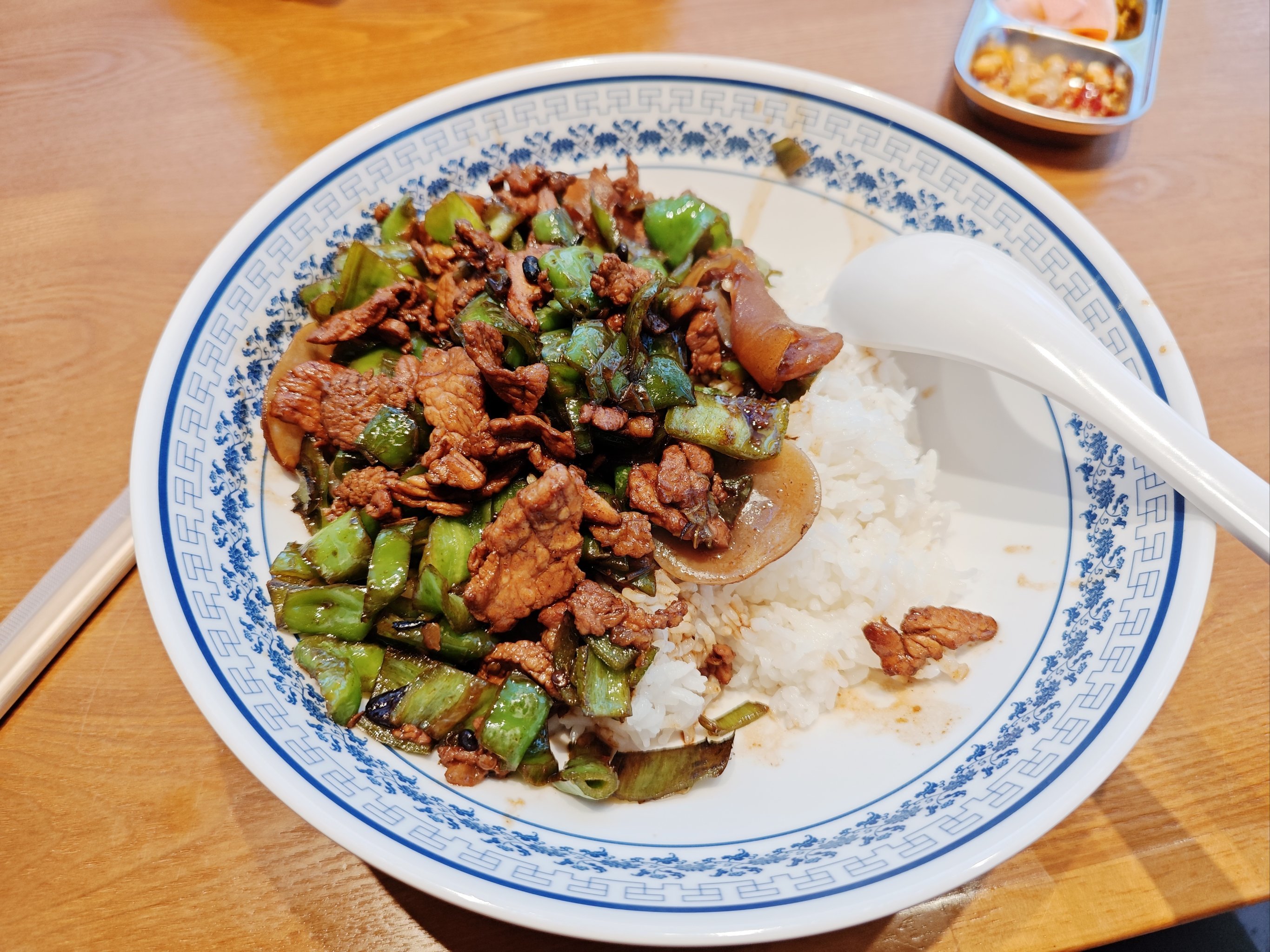 对川湘赣籍北漂来说,盖码饭里的辣炒肉、香干炒肉,就像家乡的信号,那种熟悉的锅气能快速抚平异地打拼的不安。