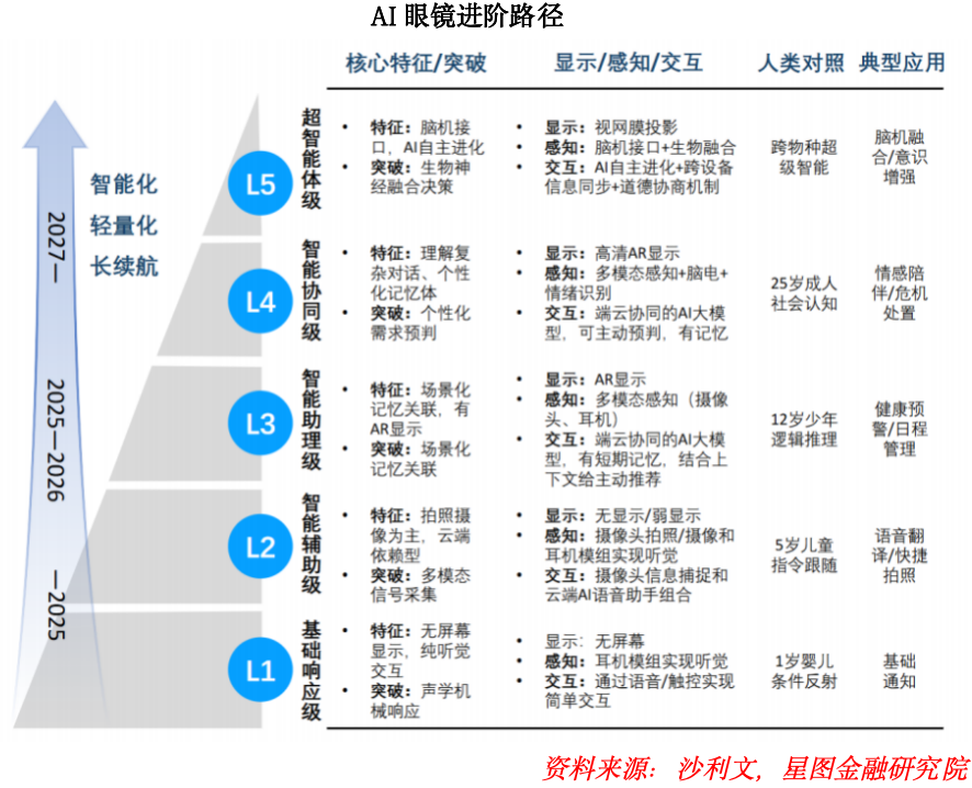 整体来看,随着软硬件技术持续突破,当前AI眼镜已具备基础的信息处理与简单逻辑推理能力,后续随着技术持续进步,有望稳步向超级智能体迈进。