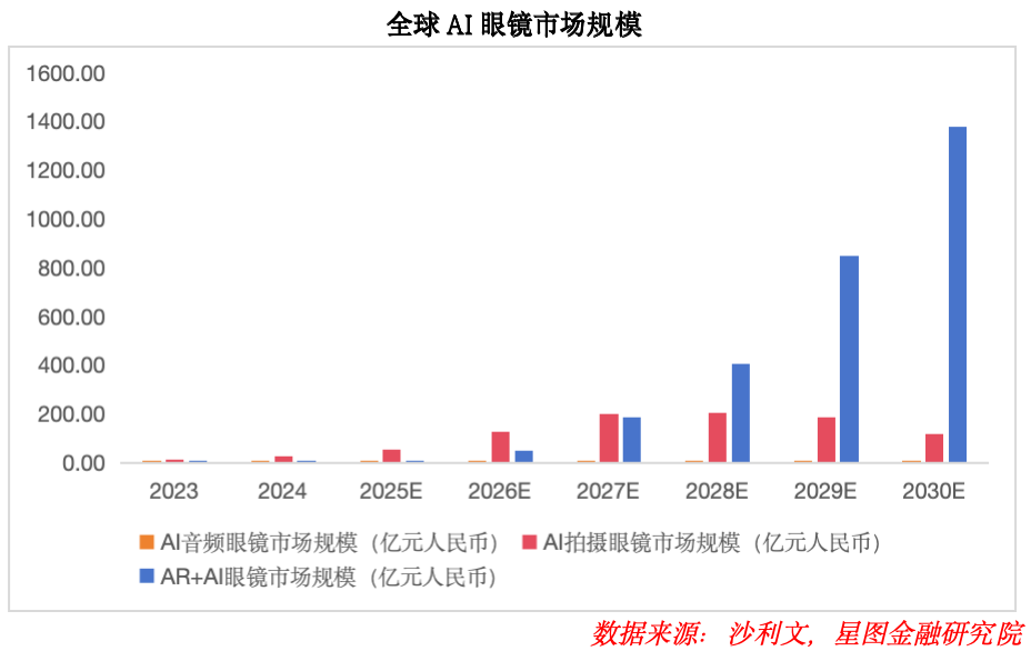 从市场结构来看,目前AI拍摄眼镜占据主导地位,市场份额达94%,AR+AI眼镜占比4%,AI音频眼镜占比2%,但随着技术持续进步,功能更全面的AR+AI眼镜预计将逐步成为市场主流,到2035年,全球AI眼镜市场规模有望达到1500亿元,其中AR+AI眼镜市场规模有望达到1380亿元,占比超过90%。