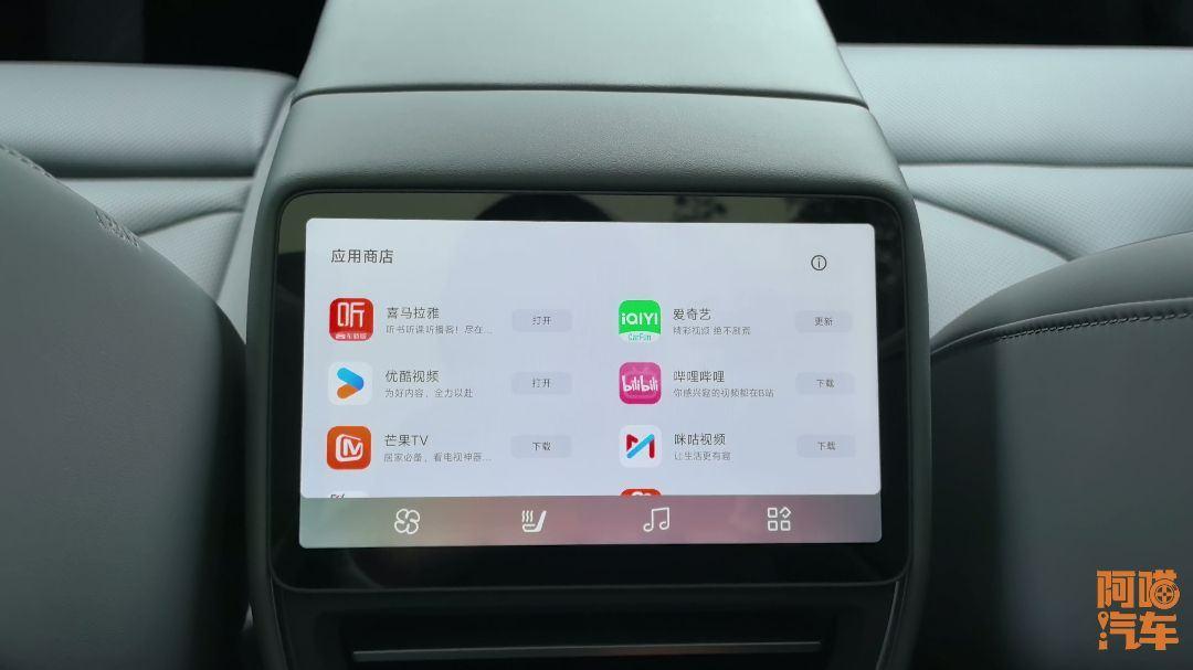 得益于超过3米的轴距,后排空间表现宽裕。后排配备独立控制屏,可操作空调、视频软件和座椅加热等功能。