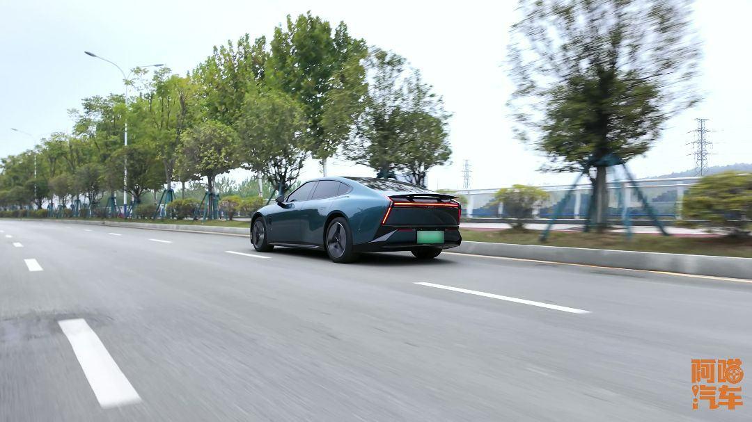 车身长度超过5米,轴距超过3米,风阻系数为0.201Cd。后轮毂部位采用隆起设计,搭配可升降尾翼,增强了运动感。