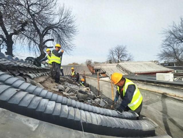 “一院一策”是此次修缮的核心准则。京诚集团组织专业设计团队深入调研每处院落的空间格局、结构状况与文化特征,量身定制差异化方案。铃铛胡同2号院作为历史风貌保留型院落,现存格局沿袭20世纪50年代风貌,针对木构件糟朽、现代红砖平屋顶与传统风貌冲突等问题,施工团队严格遵循“不增面积、不改位置”原则,修复传统合瓦屋面与清水脊,将现代平屋顶优化为传统形制,木构架采用墩接铁箍加固,墙体剔除水泥抹灰后恢复小停泥淌白工艺,既留存原生历史信息,又解决了院落积水难题。