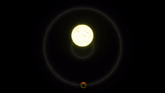 从三颗恒星的运动关系中不难发现,比邻星b在这里面的角色有点像我们的月球,然后比邻星是地球,南门二A和B合体是太阳(虽然这两个太阳很小)。