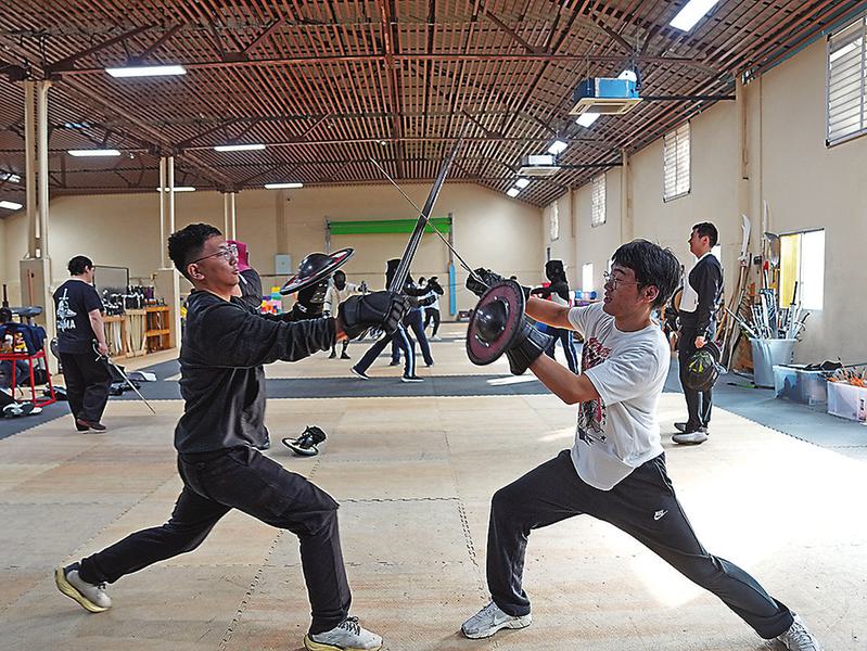 11月22日,会员们在上海历史武术俱乐部内对练。