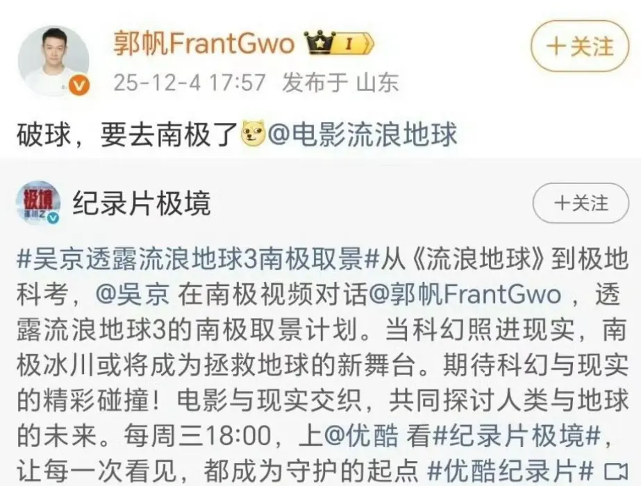 好家伙!《流浪地球3》将在南极取景,我预感:中国科幻电影大门,这回要连门带墙都给轰开了