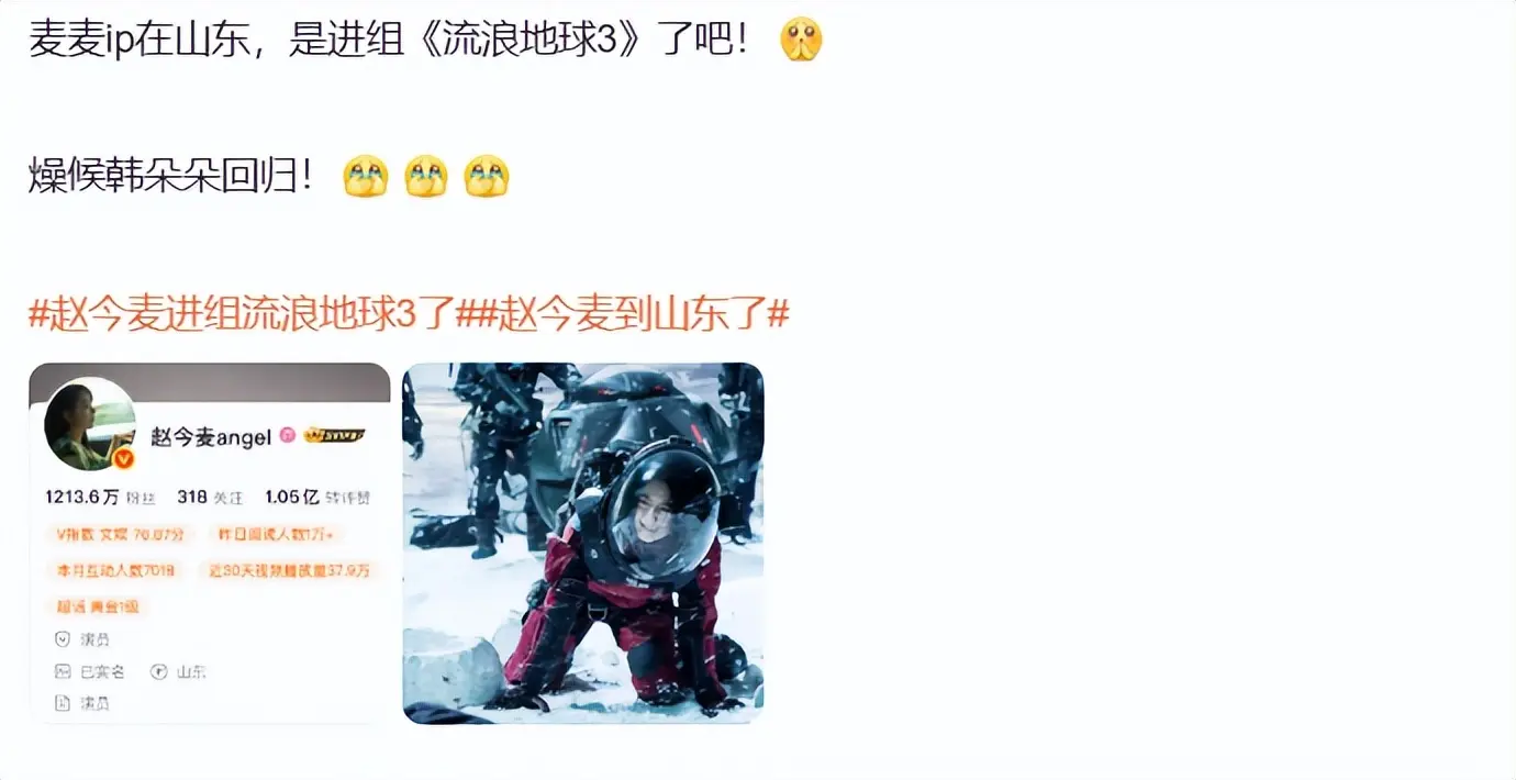 除此之外,网传杨超越、董思成这两位流量演员也会参与第三部的拍摄,但暂时官方还没有进行官宣,还是以官博账号的消息为准吧。