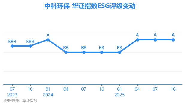 日前,华证指数公布了新一期(2025年10月31日)的ESG评级结果,中科环保(301175.SZ)获得A评级(华证指数评级为C起至AAA九档,C为最低档,AAA为其最高一级评级/AA为其第二档),上一期(2025年7月31日)ESG评级为A。本期ESG