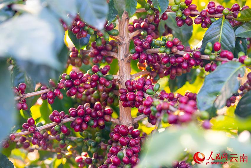 红彤彤的咖啡果(资料图)。人民网记者 虎遵会摄人民网普洱12月6日电 (记者虎遵会)12月5日,中国(普洱)国际咖啡博览会、普洱茶博览交易会在云南省普洱市开幕。记者从开幕式上获悉,通过系统实施中低产咖啡园