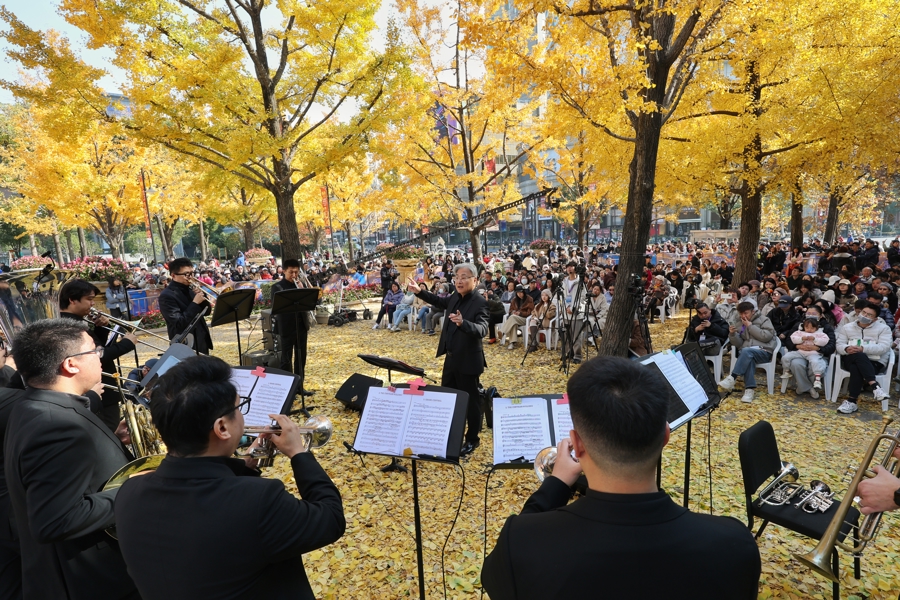 今年的“银杏音乐会”以“杏会金响”为主题,由上海铜管室内乐品牌——上海铜管重奏团(Shanghai Brass)带来,这支乐团由圆号演奏家、上海音乐学院管弦系圆号教授韩小明创立。这也是由黄浦区人民政府主办,黄浦区文化和旅游局、凯迪拉克·上海音乐厅承办的2025上海城市草坪音乐会“冬之乐”系列演出之一。