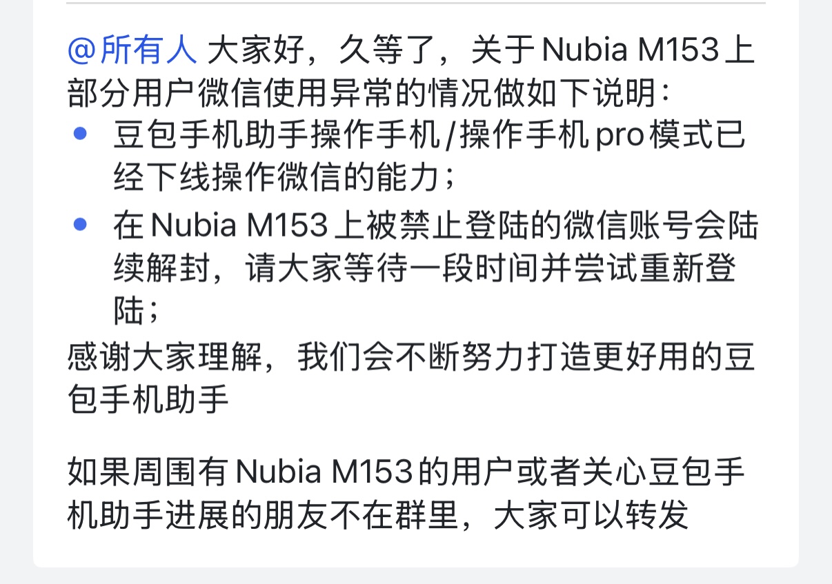 回到此次豆包手机助手争议的导火索,是多位用户反馈若涉及操作微信,会出现微信异常退出甚至无法登录的情况。
