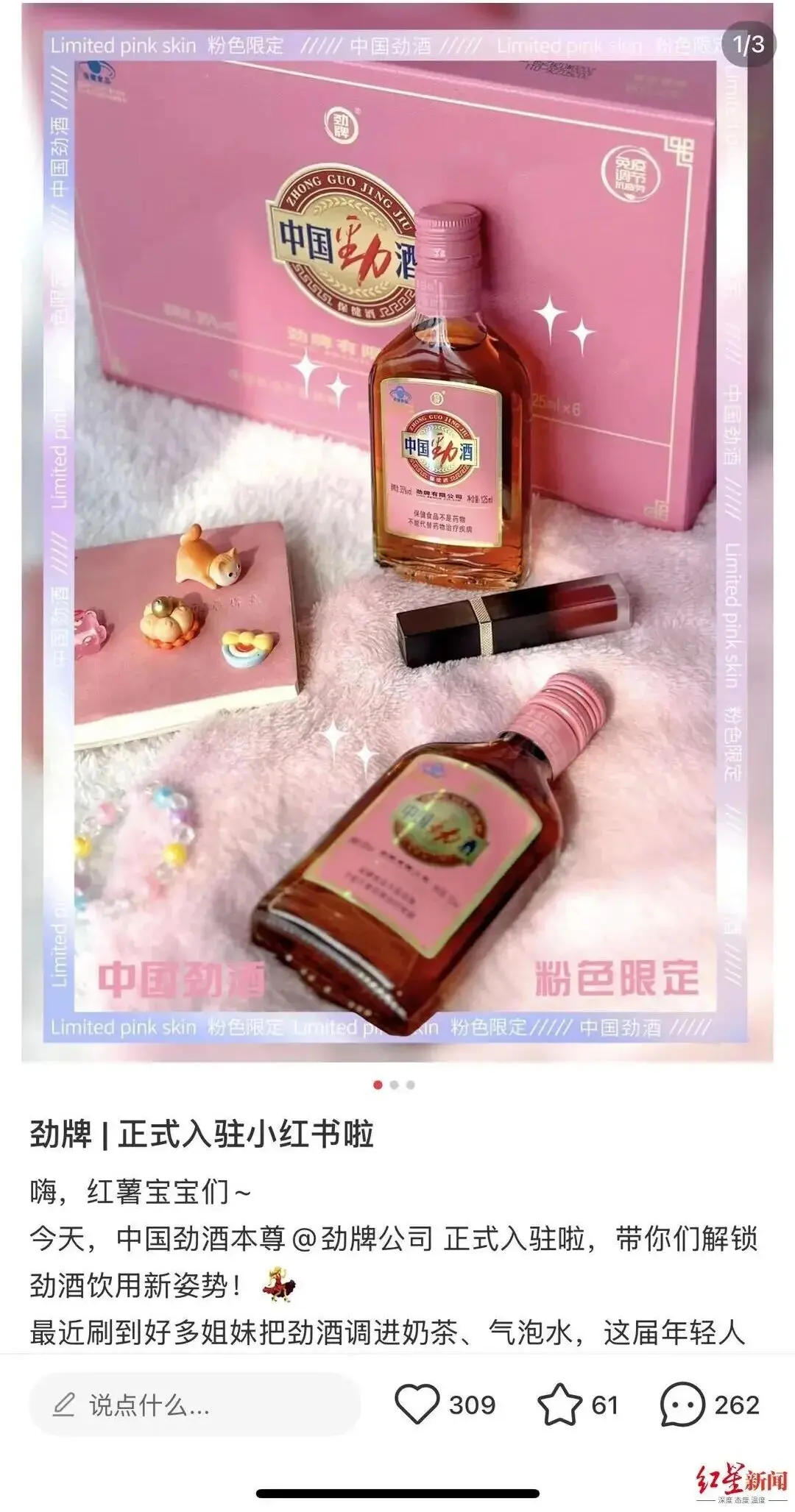社交平台上,与“劲酒”相关的内容激增,小红书相关笔记突破10万条。不少网友还分享劲酒和其他饮料的“特调”喝法,并且号称有“调理月经”“治疗脱发”等功效。