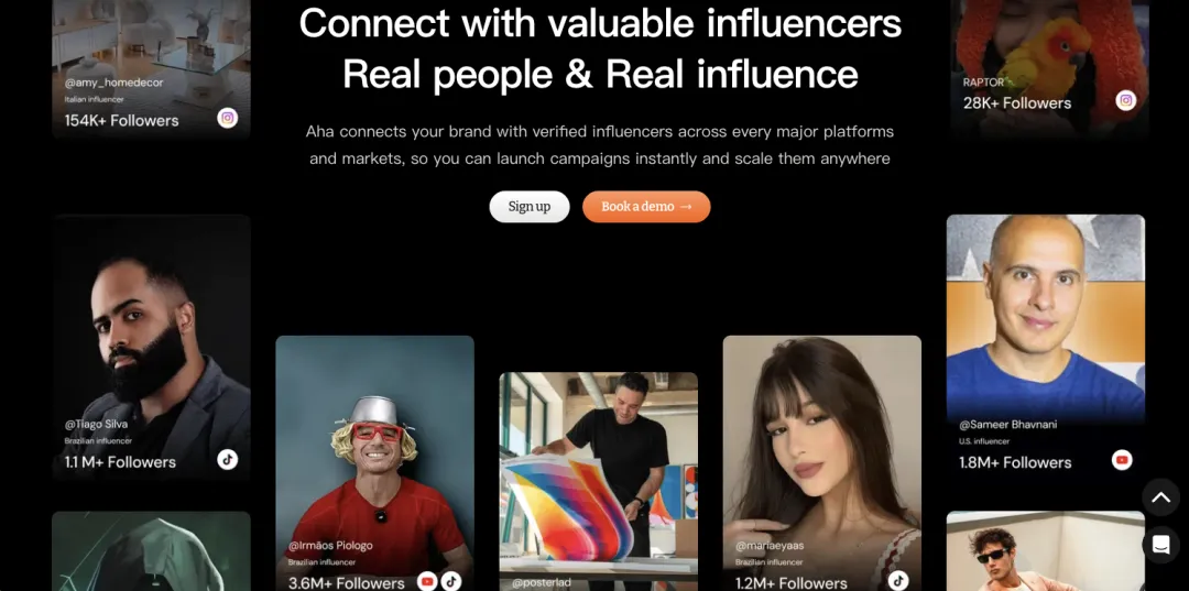 正是在这样的背景下,Aha应运而生——作为一家AI原生的内容营销平台,Aha通过自研AI Agent重构达人营销全链路,基于深度内容理解与受众画像,精准匹配广告主与全球创作者,并支持按实际效果结算,真正实现“品效合一”。