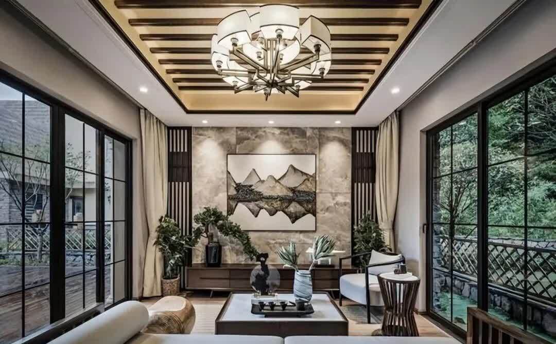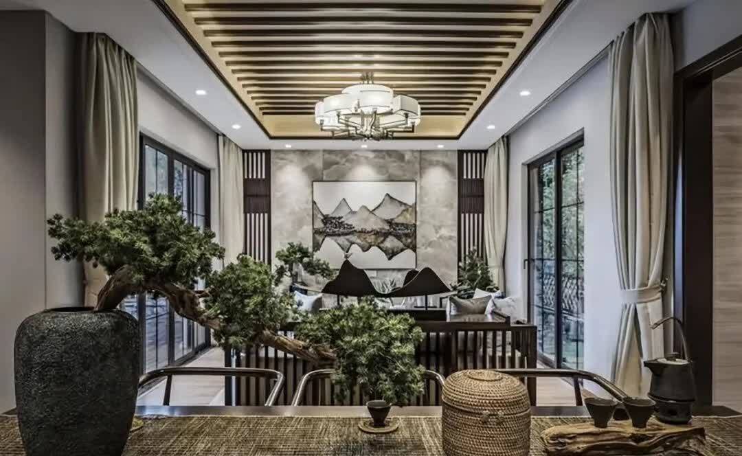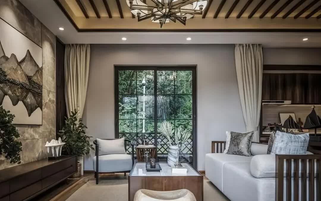 客厅的设计理念,在东方传统的意境中,以简洁的家居装饰和意象布置,打造出清雅的文化禅意。