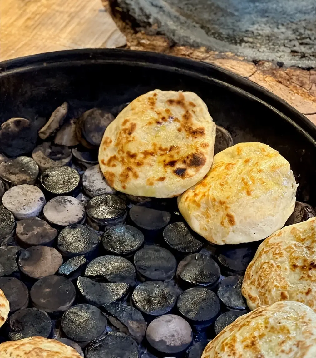 浚县子馍,一种充满古老智慧的美食。它不是在烤箱里烤的,而是在铺满滚烫鹅卵石的铁锅里烙制而成。高温的石子让面饼受热均匀,烤出的子馍外皮金黄酥脆,内里却分层柔软,散发着纯粹的炭火麦香。刚出炉的子馍最好吃,可以直接啃,感受外酥里嫩的层次;也可以夹上卤肉和鸡蛋,变成一份丰盛的“中式汉堡”。