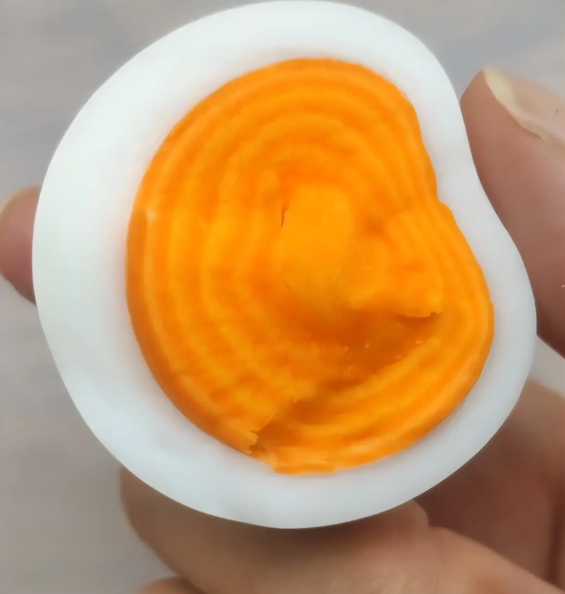 这是鹤壁淇县的骄傲,也是国家地理标志产品。普通的咸鸭蛋切开后,蛋黄是实心的,而缠丝鸭蛋却大有乾坤。煮熟后对半切开,蛋黄里一圈圈的金色纹理清晰可见,如同天然的年轮,环环相扣,因此得名“缠丝”。它的蛋黄沙糯流油,蛋白则Q弹紧实,咸香恰到好处。在当地,直接切片装盘就是一道上好的凉菜,是待客的珍品。