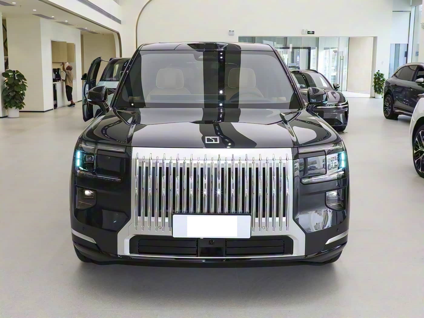 再来看车身侧面部分,车身侧面采用 “飞桥游艇式” 设计,悬浮式车顶搭配黑化处理的 A/B/C 柱,弱化了 5.2 米长车身的笨重感。22 英寸星耀锻造轮毂(Hyper 版升级为 23 英寸碳纤维轮毂)搭配米其林揽途轮胎,兼具视觉张力与抓地性能。贯穿车身的腰线从车头延伸至车尾,与车窗边缘的镀铬饰条形成呼应,勾勒出优雅的车身轮廓。全系标配的电动踏板在车门开启时自动伸出,配合 170mm 宽阔中央通道,让三排进出更便捷。