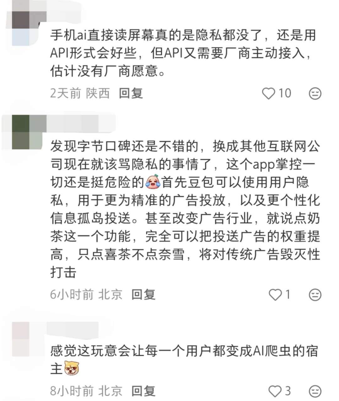 除了APP本身的防御,许多用户也对豆包读取屏幕信息,且能在多个应用间自由切换的操作方式深感不安。