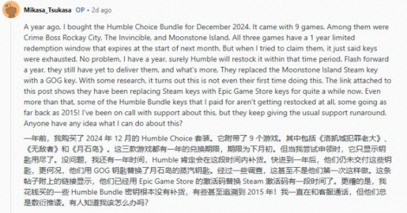 3.Humble Bundle平台私自替换用户Steam密钥引发信任危机