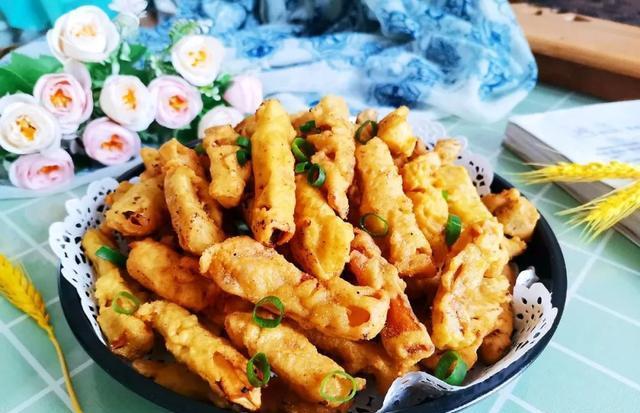 分享给大家一道外酥里嫩,嚼着比肉香的椒盐杏鲍菇,将杏鲍菇切成条,粘裹蛋糊,下油锅一炸,香味十足,吃着开胃更下饭,这椒盐杏鲍菇5块钱的成本做一盘,个人认为其是杏鲍菇的各种做法中最好吃的一种,椒盐杏