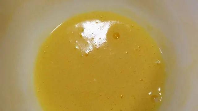 第三步,调成如同稠酸奶一般的糊状,如果玉米淀粉放多了,可以再加上一个鸡蛋,不要加水,蛋糊拌好后,在锅中添上比较多的食用油;