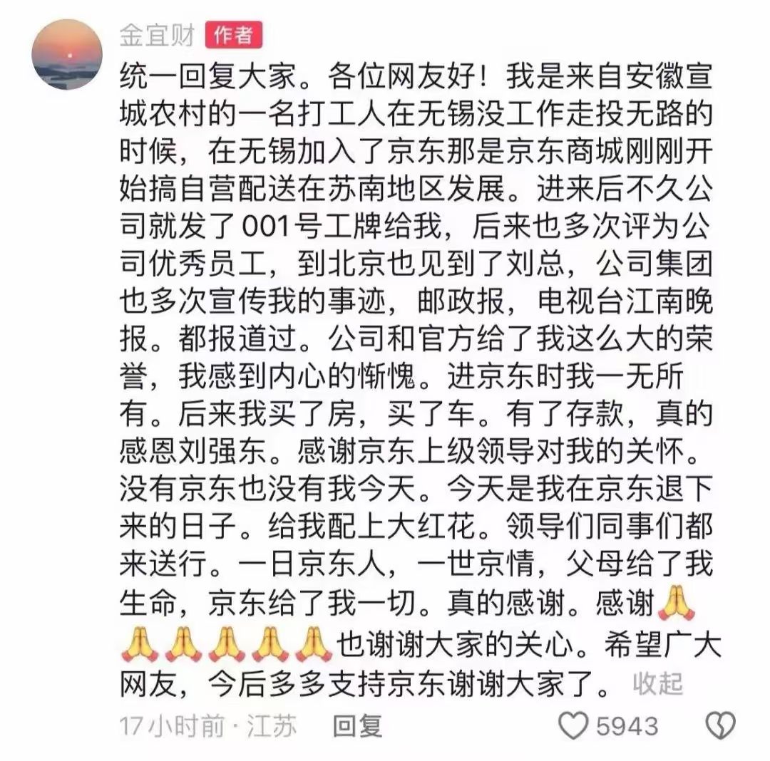 京东001号快递员已退休,勤恳工作16年,刘强东承诺的房给了吗?