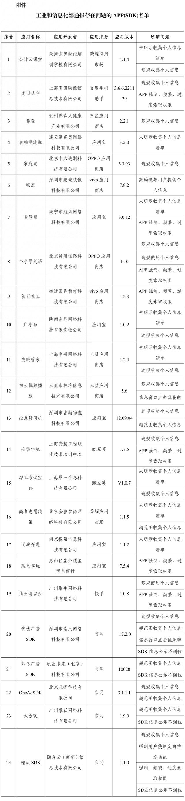据悉,上述APP及SDK应按有关规定进行整改,整改落实不到位的,工业和信息化部将依法依规组织开展相关处置工作。