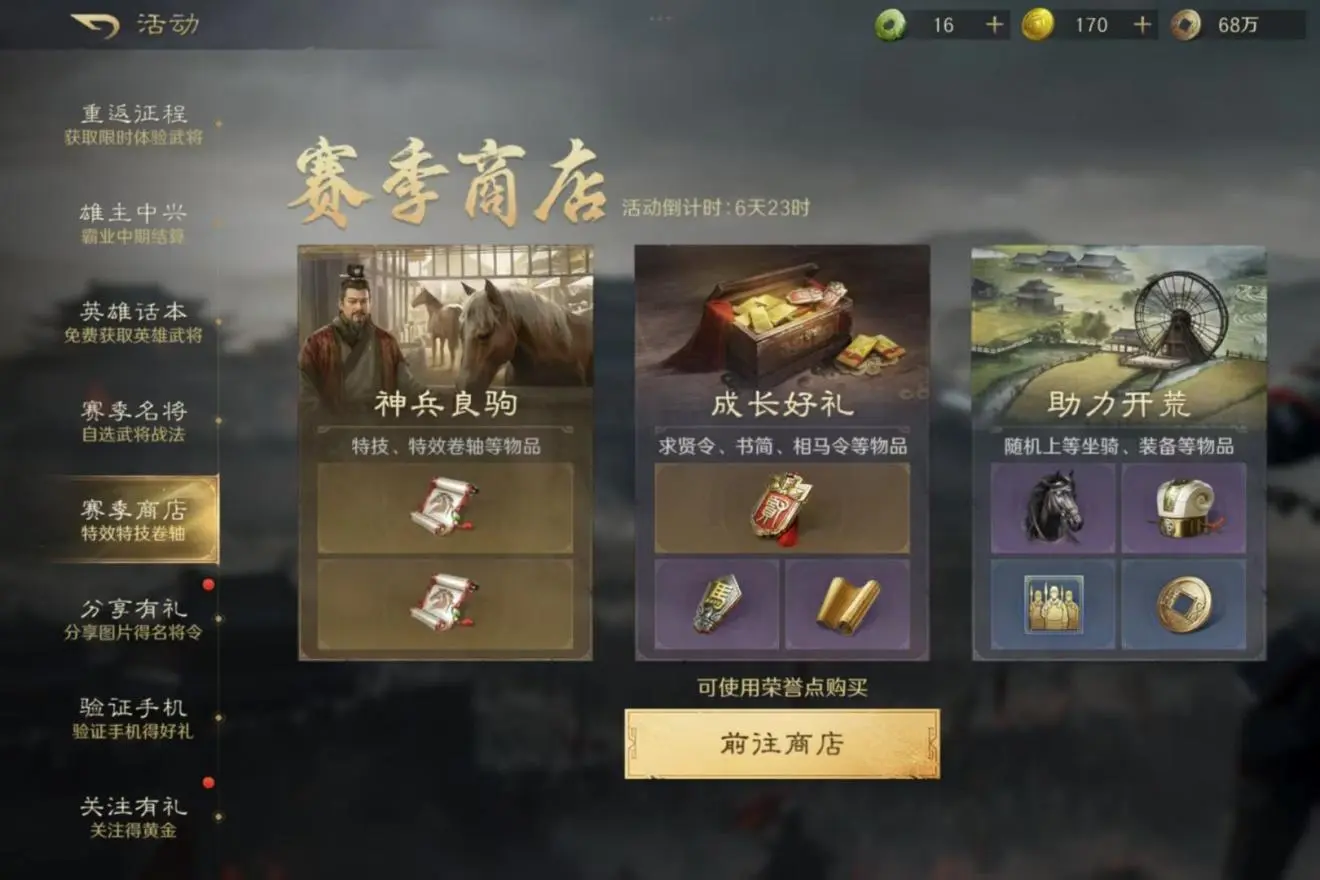 这款手游对新手玩家的“升级福利”堪称诚意满满。新玩家创建角色后,不仅能直接领取全服预约奖励(包含橙色武将徐盛、黄金和求贤令),通过第六章主线还能再拿橙色武将蔡文姬;连续七日登录的“狂欢活动”里,第二天就能解锁孙策这样的强力橙将,后续还能领青玉印等珍稀道具。更贴心的是,游戏没有“氪金才能变强”的套路:抽卡8%的出橙率远高于同类游戏,20抽必出橙将的保底机制让“非酋”也能安心;武将战法槽和韬略解锁不用同名卡,只消耗免费铜币;连部队升级都能在练兵所自动完成,彻底告别“肝到凌晨”的痛苦。