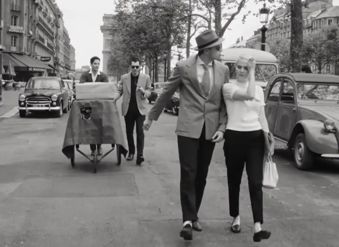 又比如摄影方式。影片重现了摄影师拉乌尔·库塔尔如何用手推车和轮椅改装成移动支架,在香榭丽舍大街进行未经许可的偷拍。今天我们称这种风格为手持摄影或自然主义美学,但在当年,这只是为了规避警察盘查、节省轨道车费用的权宜之计。