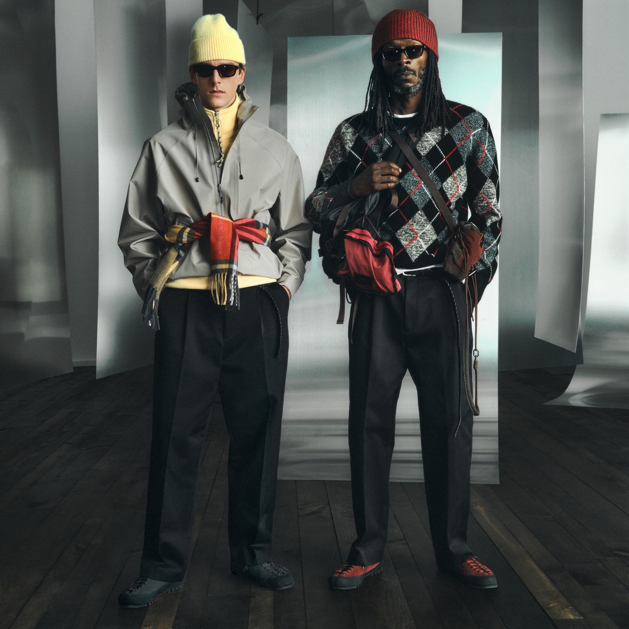 ZARA携手男装设计师Aaron Levine推出的首个联名系列,将重心放在好穿、耐看、可自由组合的真实日常衣橱之上。系列从户外机能、商务通勤到学院风与美式休闲多条线索并行展开,以宽松剪裁与经典廓形为基础,将西装、大衣、功能外套、法兰绒衬衫、橄榄球条纹衫等单品重新整合为一套可随意混搭的完整体系。外套以巴尔玛肯大衣、双排扣外套和登山风格夹克为核心,羊毛、羊绒混纺与耐磨机能面料并用,兼顾垂坠感与实用性;西装与套装强调自然肩线与松弛比例,弱化正式感,强化日常穿着的舒适度。鞋履从配备Vibram鞋底的登山靴延伸到极简皮革系带鞋,包袋则通过多口袋尼龙与防撕裂材质强化功能属性,将户外语言融入城市造型。