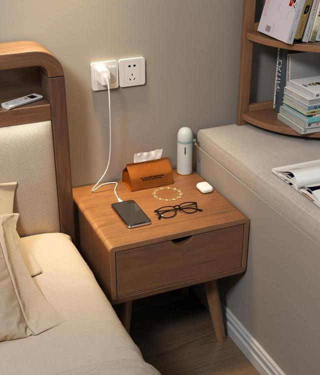 其实,房间里面就放一个实木的稍高一点的床头柜就可以,这种既美观又能储物,老人起身时还能扶着支撑一下不至于摔倒。