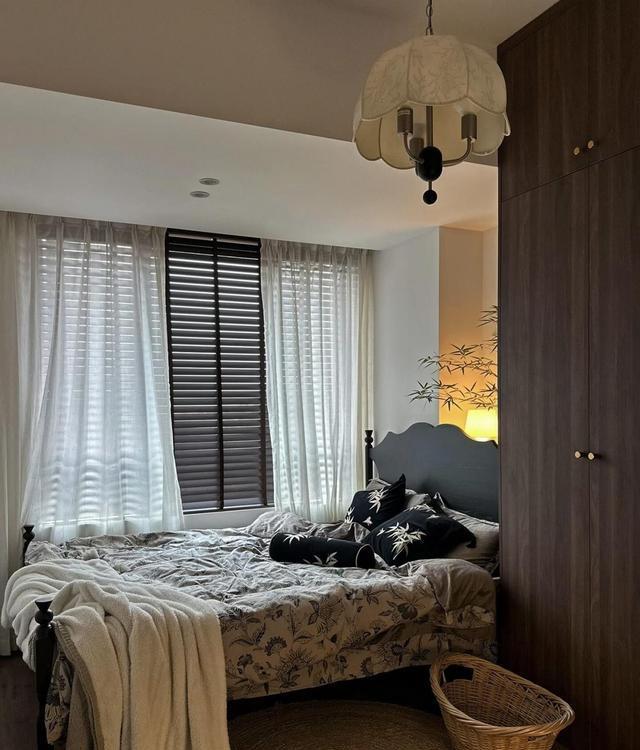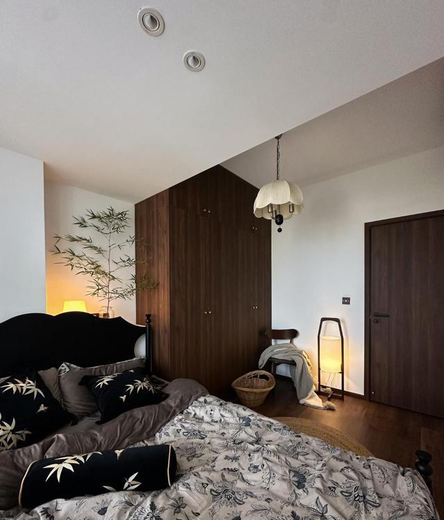如果你的卧室本来就很小,那就尽量做一些空间“放大”的设计——比如把床靠墙摆,腾出一条比较宽的过道,既能保证通行无碍,又不至于让房间显得太拥挤。