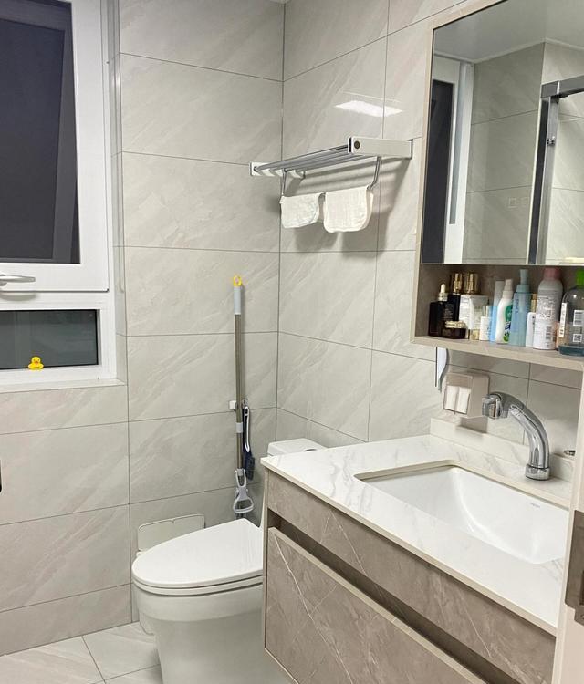 而卫生间如果没有安装扶手的话,可以将马桶靠近洗手台,这样老人起身时也可以借力洗手台,减少不必要的摔倒风险。
