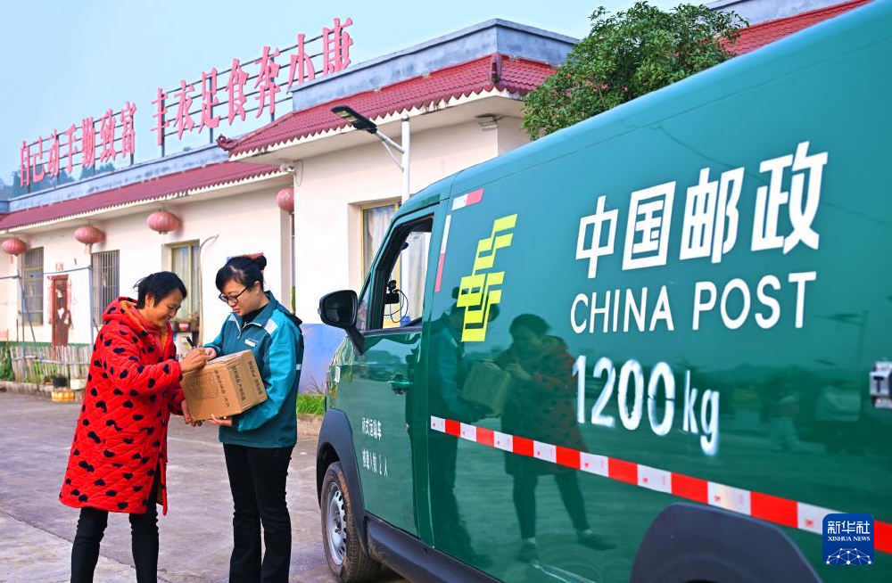 ▲12月1日,在四川省眉山市仁寿县珠嘉镇三溪社区,快递员上门投送包裹。潘帅 摄/新华社