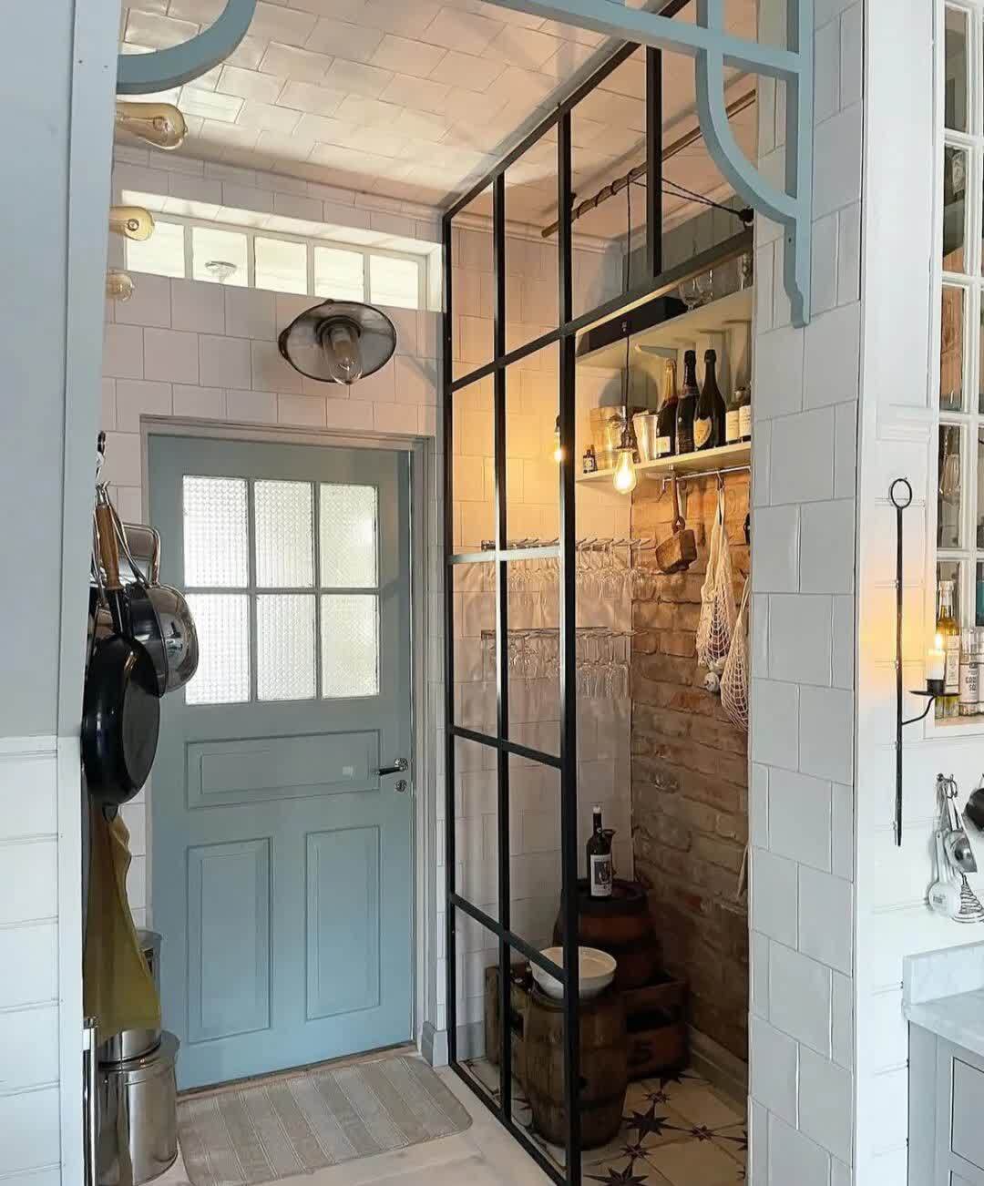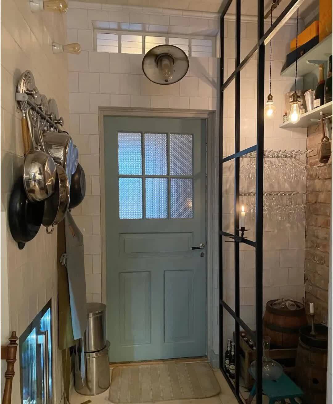 玻璃隔断和磨砂玻璃门,让这个门边的死角不再阴暗逼仄。成为日常的储物角后,物品也一览无遗,也为生活带来更多方便。