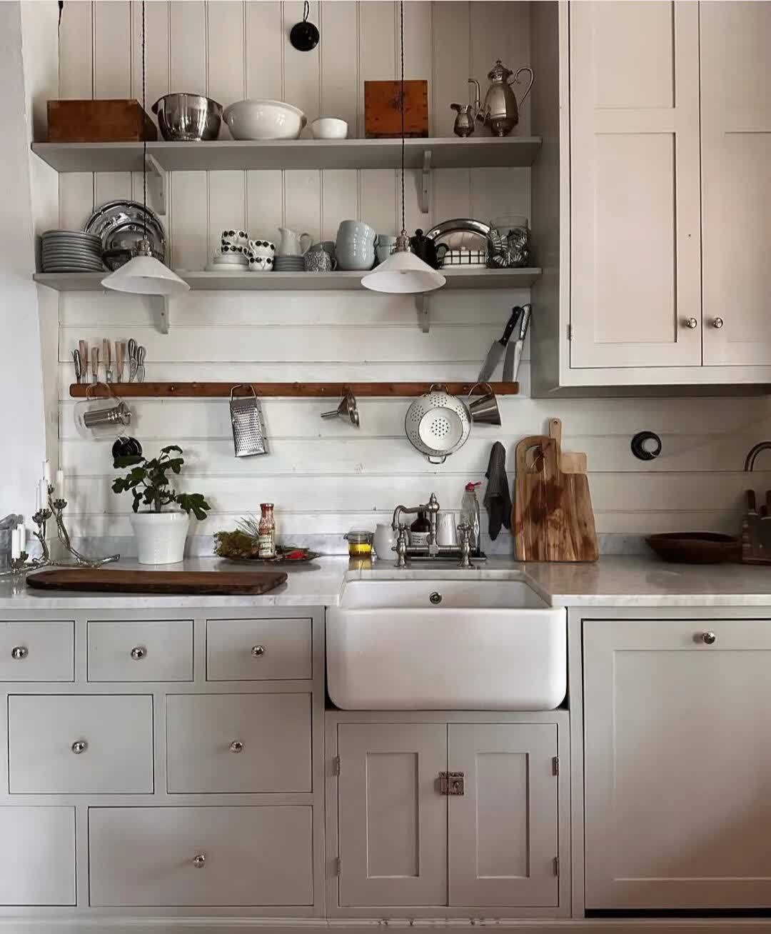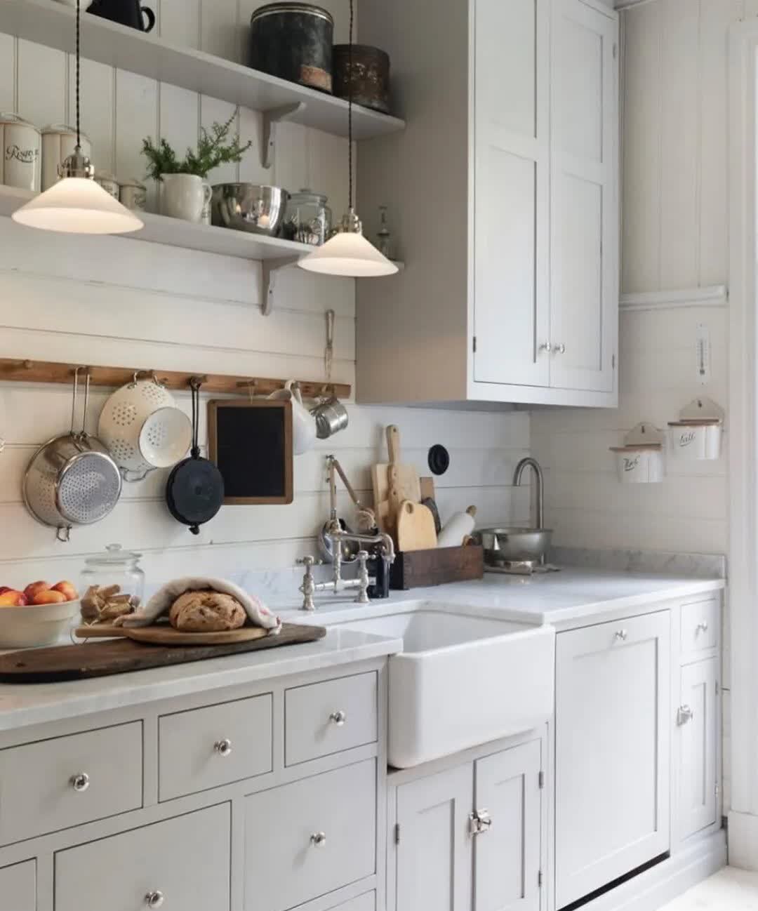 原本的厨房在80年代中期拆除了,所以在重建这个厨房时,主人希望它是功能齐全,通风透气,光线良好的。所有抽屉里外都是木质,加上亚麻籽油漆,以及大理石纹理台面,感觉是那么的新鲜、实用和个性化。