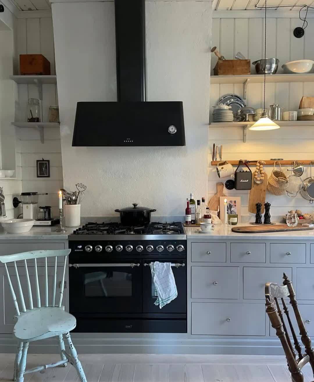 打造一个世纪之交的厨房,不只是加上橱柜和配件,更需要的是一种感觉。在房子里突出老物件,让材料和细节说话,同时要规划设计适合今天日常生活的东西。所以这个厨房里有简约现代的橱柜、厨灶,也有老古董的家具,以及原本的炉火灶,为的就是创造一个几乎不想离开的厨房。