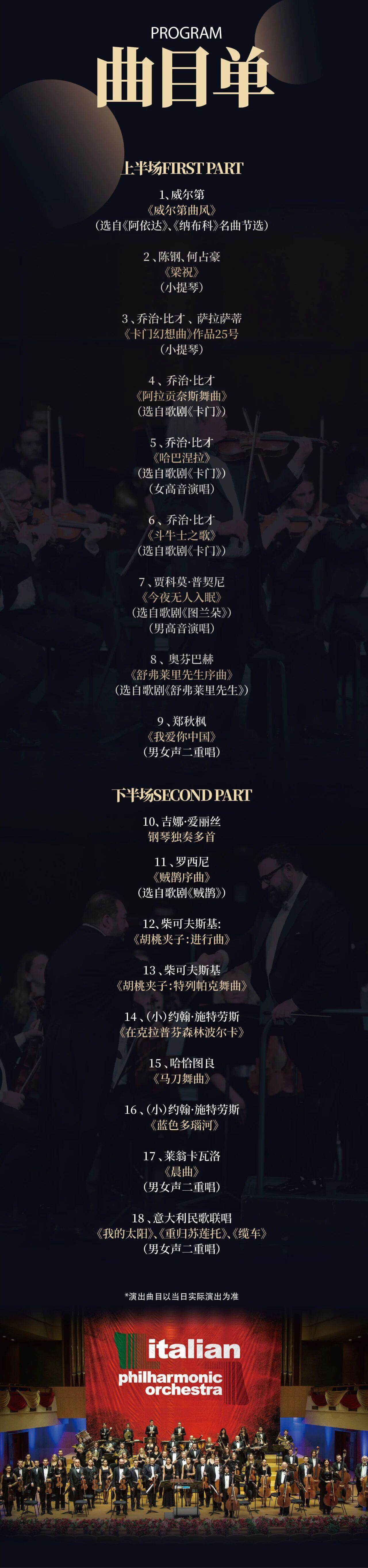 乐团方面,有着 “地中海的音乐旋风” 美誉的意大利爱乐乐团将全程伴奏,这支创建于 1970 年的顶尖乐团,五十多年来足迹遍布五十多个国家,乐手均为意大利乐坛顶尖高手。特邀独奏小提琴大师安德烈・卡迪纳勒是当今为数不多的能在音乐会上演奏全套《帕格尼尼24首随想曲》的音乐家,该曲被誉为小提琴历史上技法最困难的曲目。