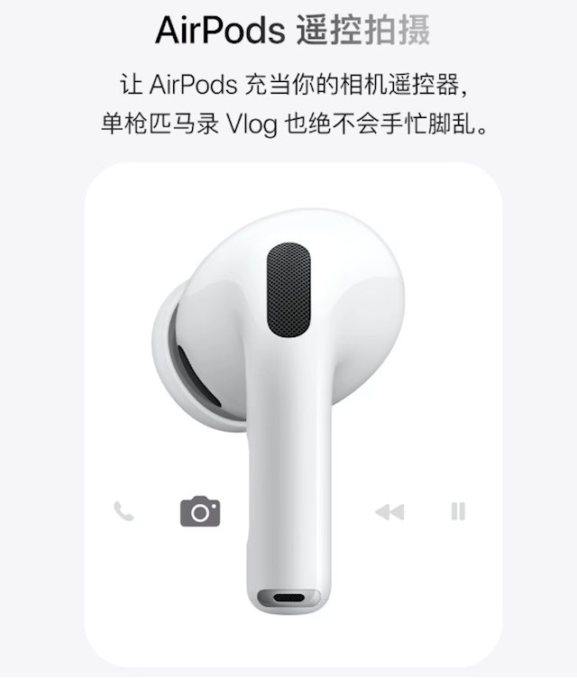 2、AirPods遥控拍摄功能:让AirPods充当你的相机遥控器,单枪匹马录Vlog也绝不会手忙脚乱;