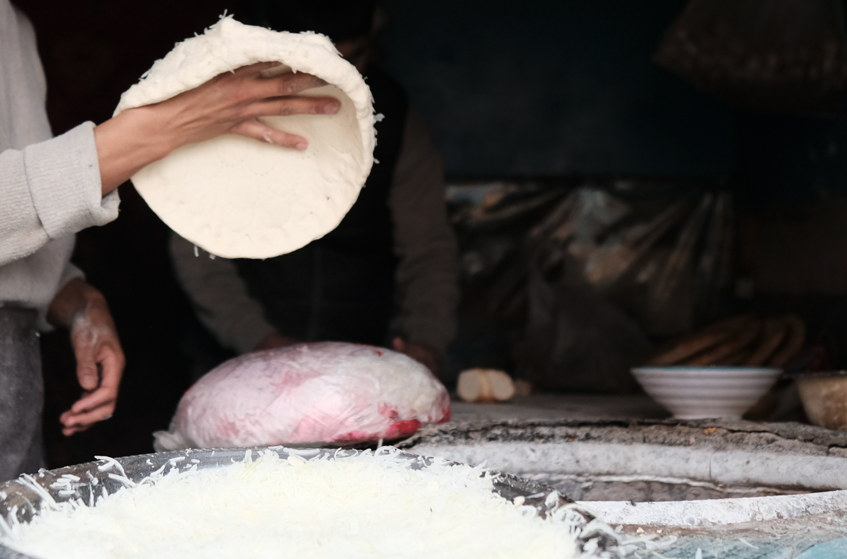 馕的制作,讲究得让人想给面粉鞠个躬。老祖宗留下的口诀是:“盐为魂,火为骨”。听起来像武侠秘籍?其实真没夸张!从和面、醒面到制坯、戳花、入坑烘烤,十几道工序环环相扣,每一步都藏着匠人的手感与经验。而最玄乎的,莫过于“馕坑掌控”——高手靠耳朵听火声、凭眼睛看烟色,就能精准拿捏底火与面火的黄金配比,让一块面团在高温中涅槃成外酥内软、麦香扑鼻的完美馕。