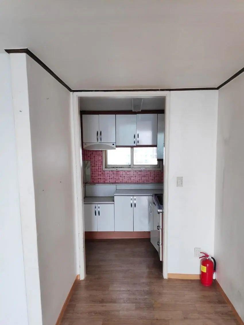 该在前的厨房在入户的左手边,留给厨房的空间也是又小又暗。
