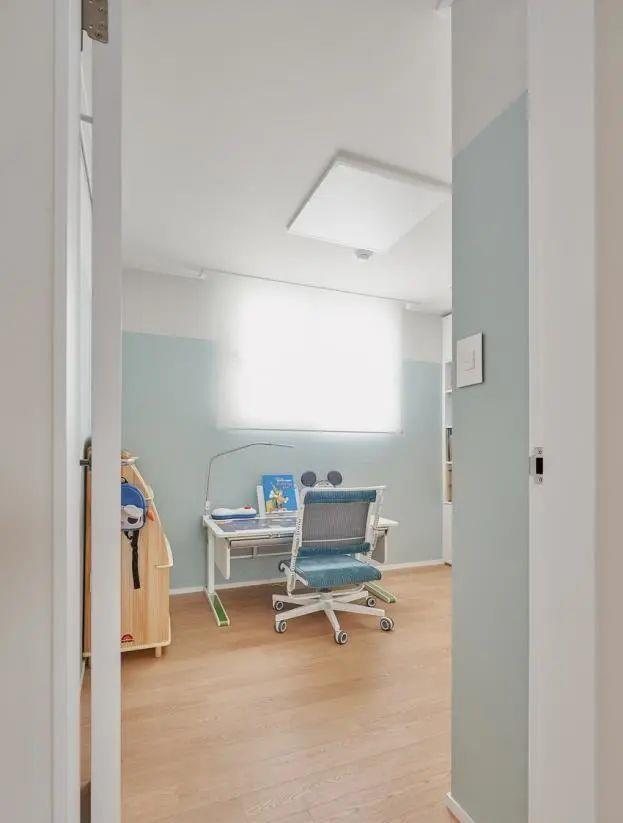 家里也安排了一间书房,浅蓝色的乳胶漆在进门的那一刻就将目光吸引了下去,清爽养眼。