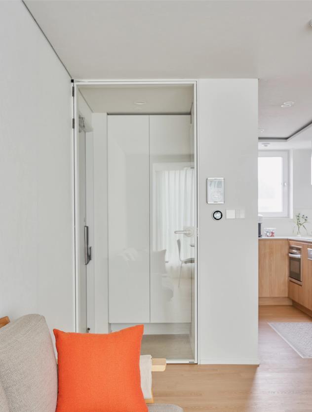 改造后将柜子换个位置装,视觉上显大,并且用玻璃门将玄关区围起来,做成独立的空间,能够很好地保证室内的隐私。