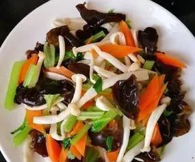 所需食材:白玉菇、黑木耳、芹菜、胡萝卜
