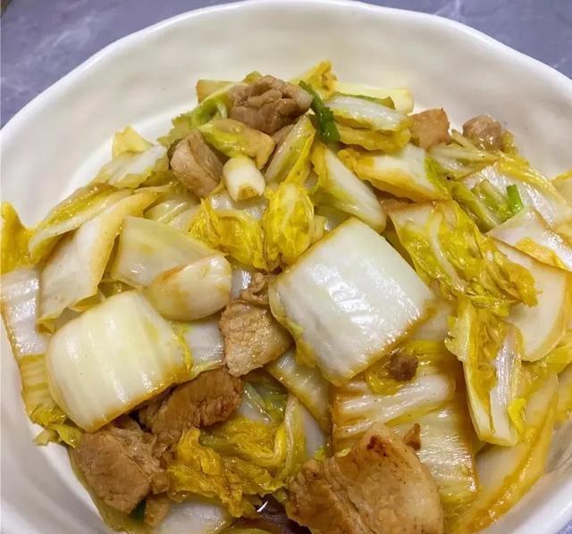 7. 出锅装盘:炒至白菜刚断生,盛出装盘,趁热享用。