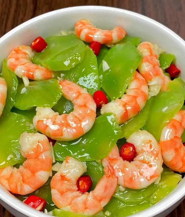 3.少油放蒜末炒香,下莴笋,虾仁炒匀