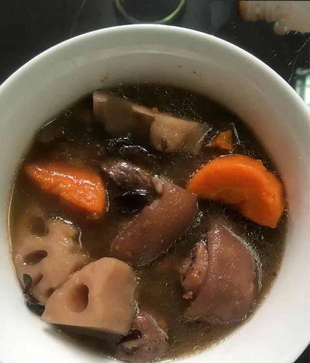 准备食材: 猪骨、莲藕、板栗、黑豆、花生米、姜片、葱段。