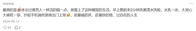 “出门不背包”还有利于打工人灵活调整上下班时间。“工位上没有包,同事根本猜不到我几点来、什么时候走。”一位网友调侃。也有不少人提到,通勤不背包后,上下班时间变得更灵活,无形中夺回了属于自己的时间。
