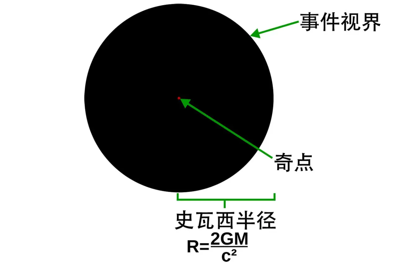 黑洞视界(史瓦西半径):黑洞的引力极强,其 “视界” 是时空弯曲的临界点。一旦越过视界,时空曲率将无穷大,空间会被压缩为零,时间也会彻底停止,这被视为 “时空的终结”。